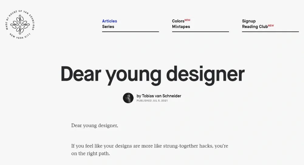 Tobias van Schneider wrote a short note with tips on overcoming insecurities and typical complexes for novice designers. For example: