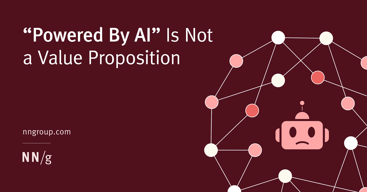 NNGroup explained why it is important to start creating a product by defining a value proposition, why it should shape the product's functions, and why the presence of AI alone cannot be the main value of the product.