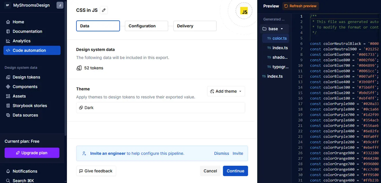 Supernova allows you to export tokens from Figma, generate code in the required formats and maintain documentation in one place.