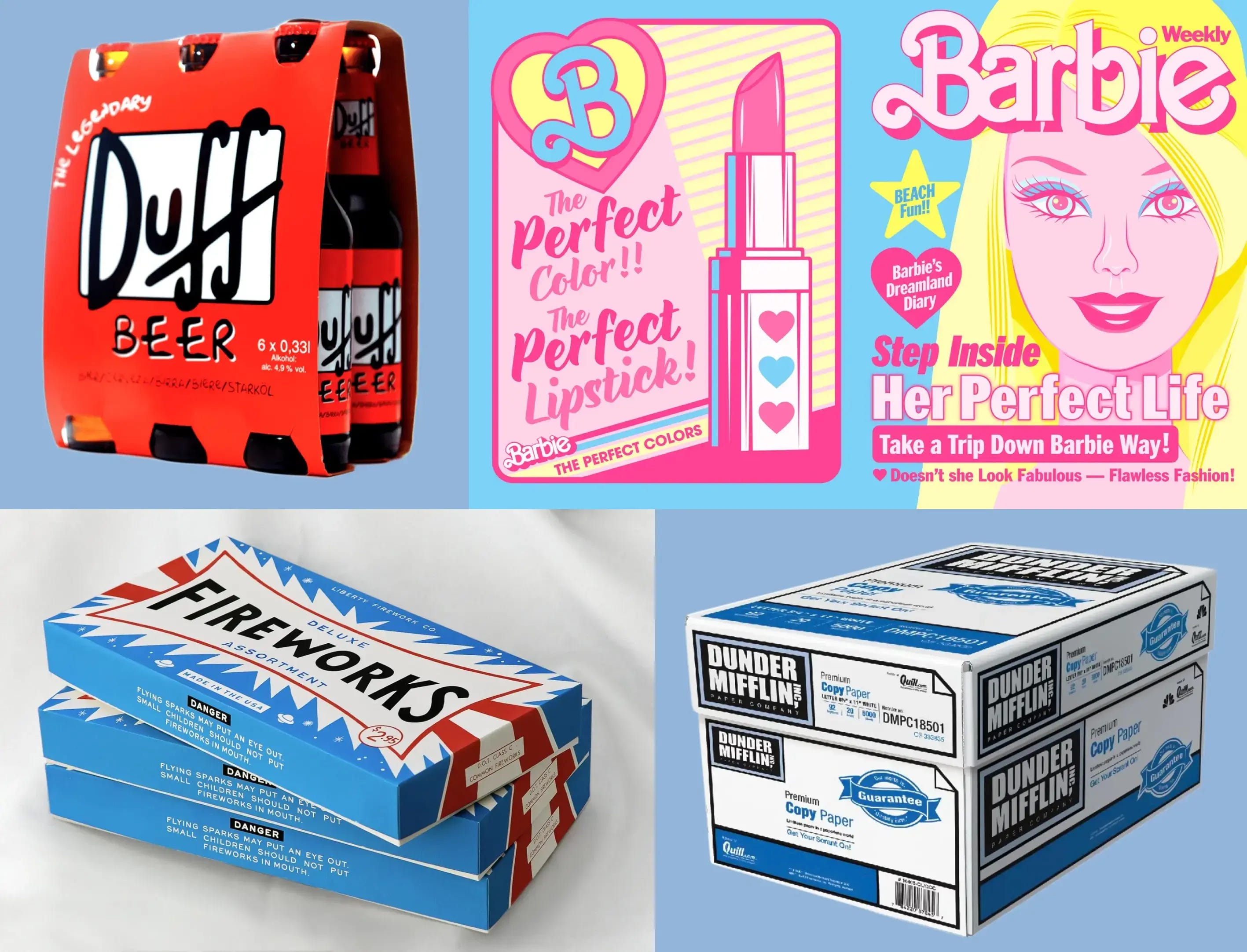 A large detailed article on how fictional brands are created and developed in cartoons and movies, what are their differences from real brands, how they help reveal characters and how they can be embodied in the real world.