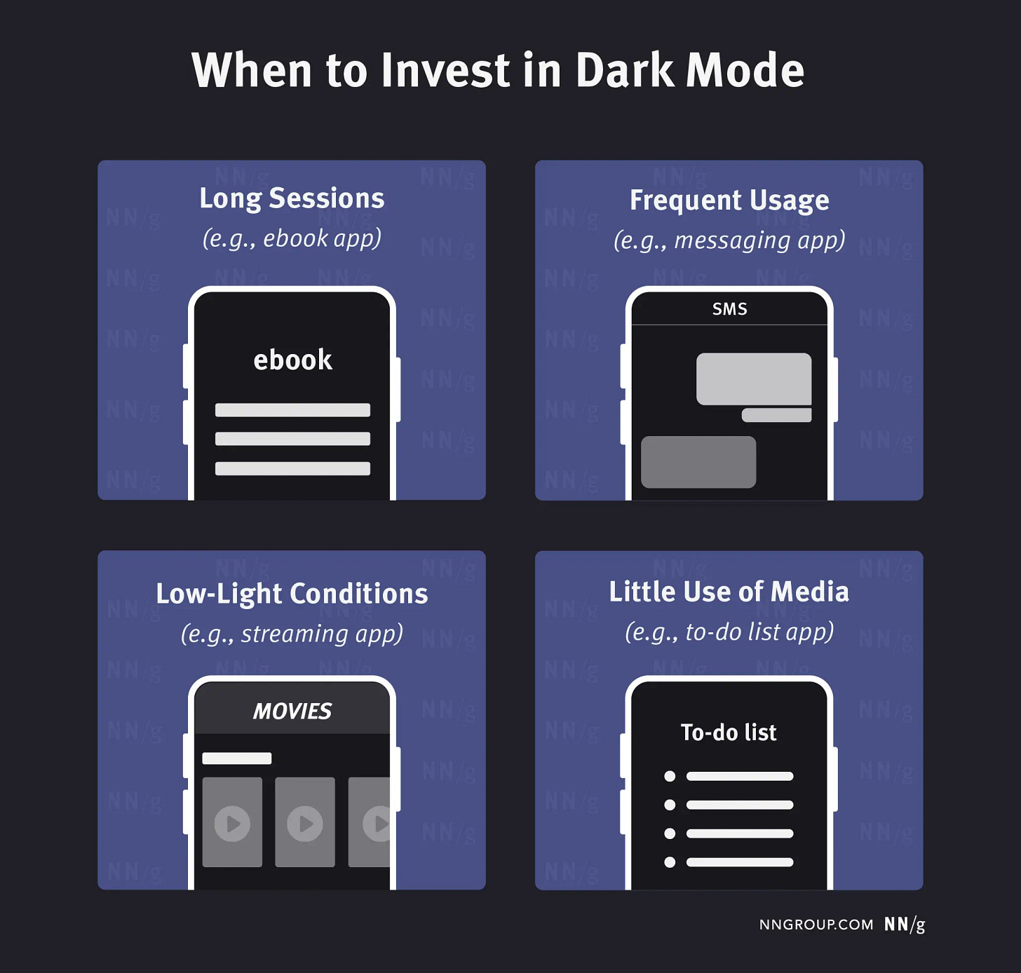 The Nielsen Norman Group has studied why people choose a dark theme and what its real effect is.